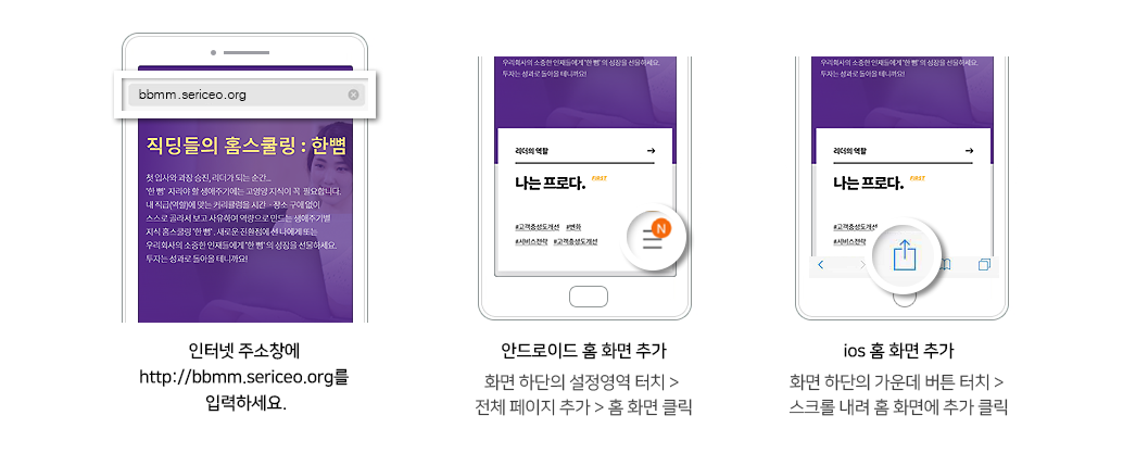 인터넷 주소창에 http://bbmm.sericeo.org를 입력하세요. [바로가기] 설치해 두시면 편리합니다.