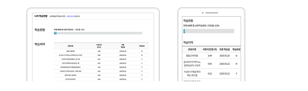 - ㆍ학습 완료된 콘텐츠는 이미지에 [학습] 태그가 표시됩니다.